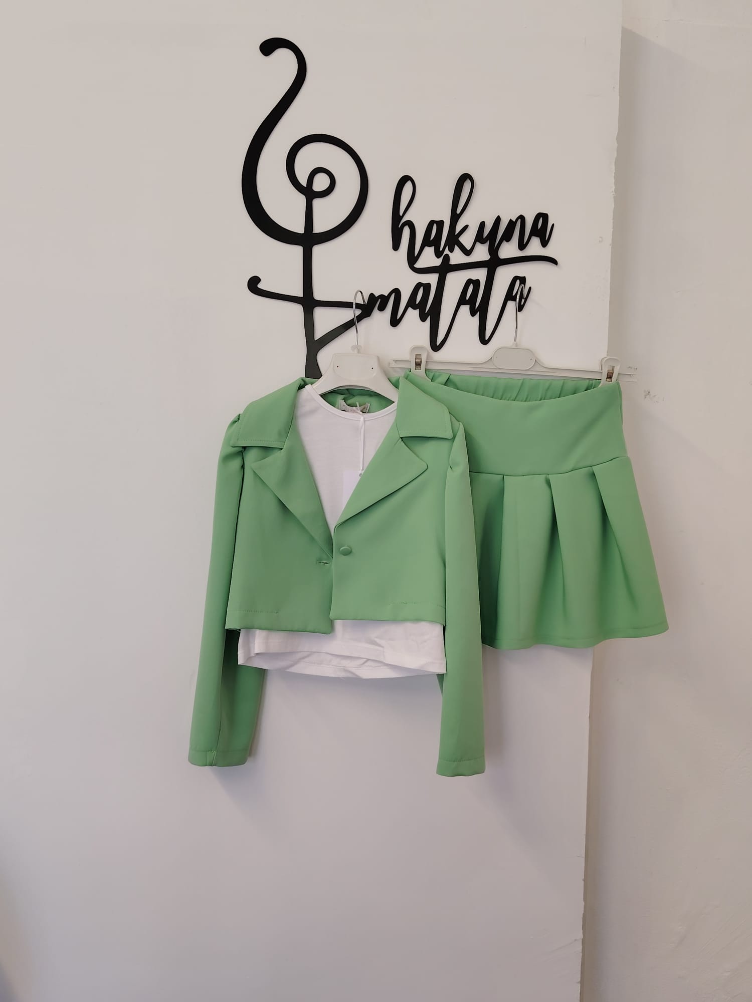 COMPLETO COMPOSTO DA GONNA PLISSETTATA,T-SHIRT BIANCA E GIACCA