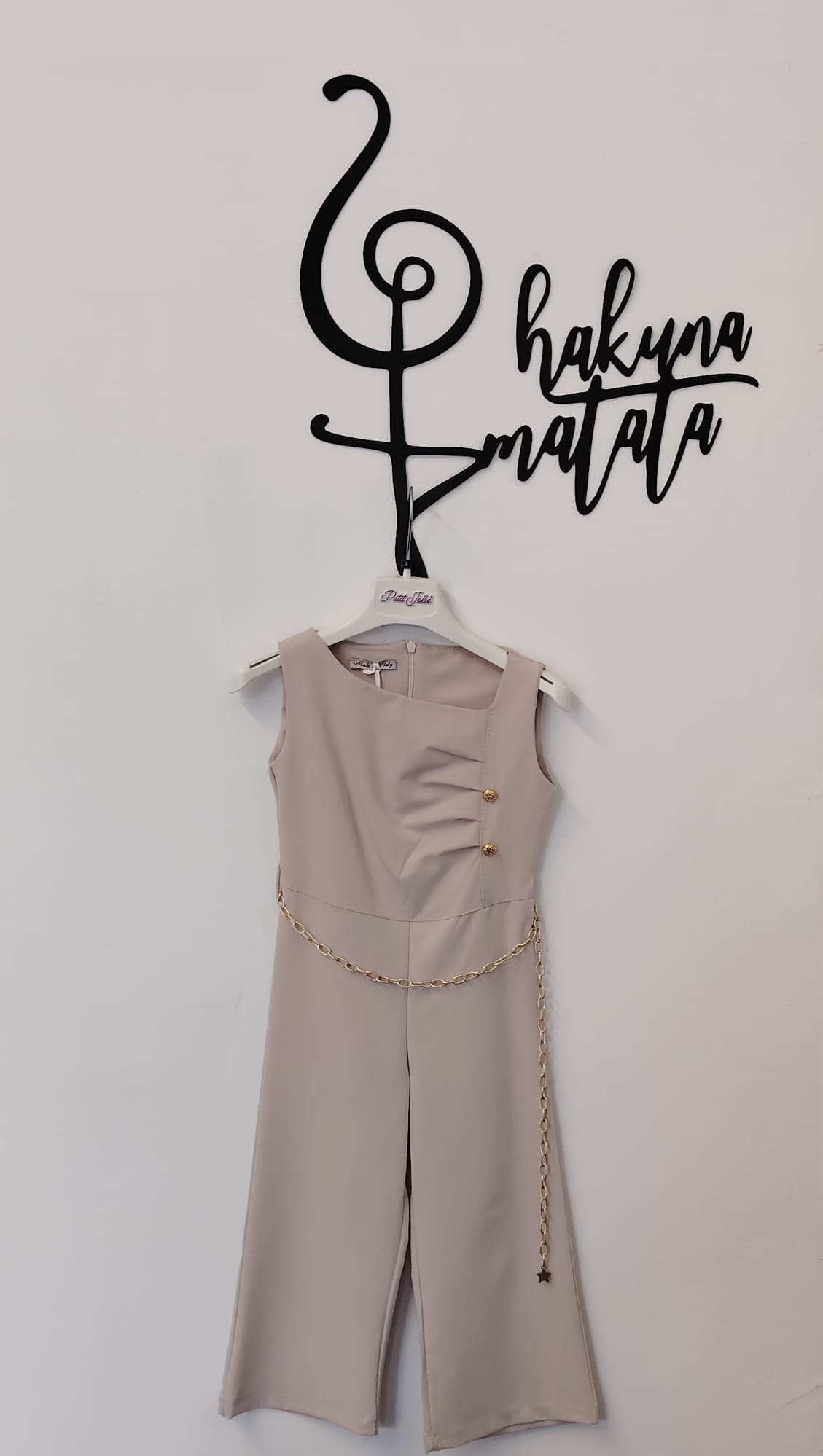 TUTA INTERA BEIGE CON BOTTONCINI IN ALTO E CINTURINA ORO