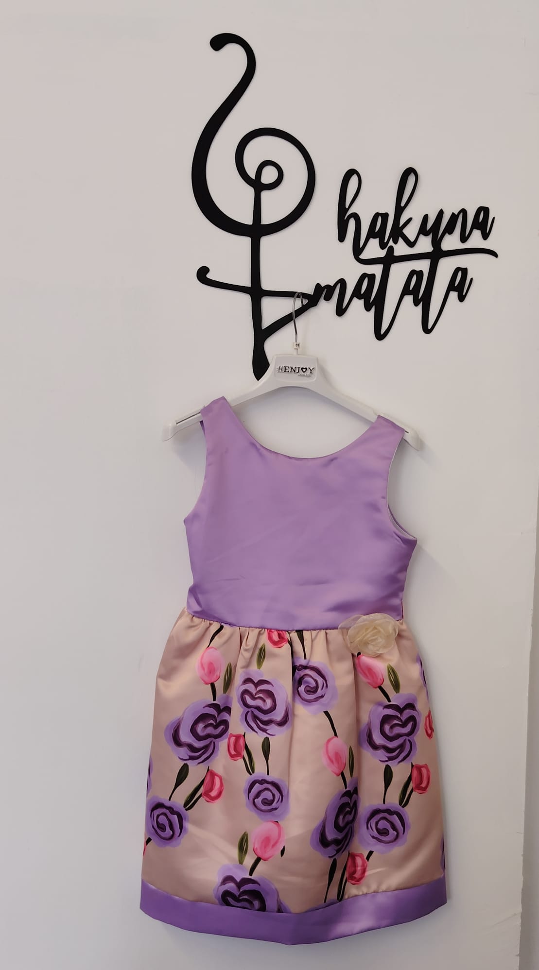 VESTITO A FIORI LILLA CON CINTURINA IN RASO ROSA IN VITA